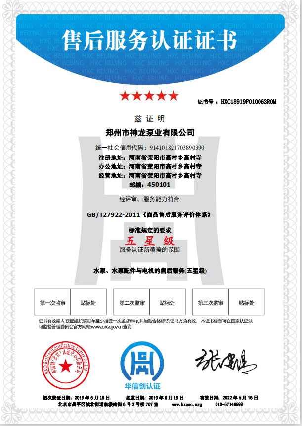 祝贺南宁学岺可再生能源开发有限公司获得水泵、水泵配件与电机的五星级售后服务认证。